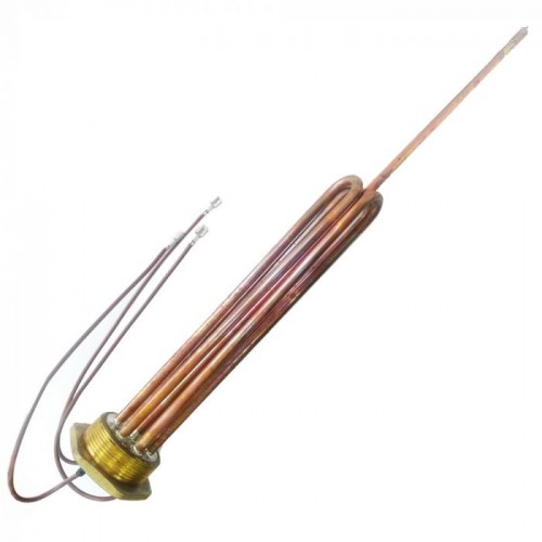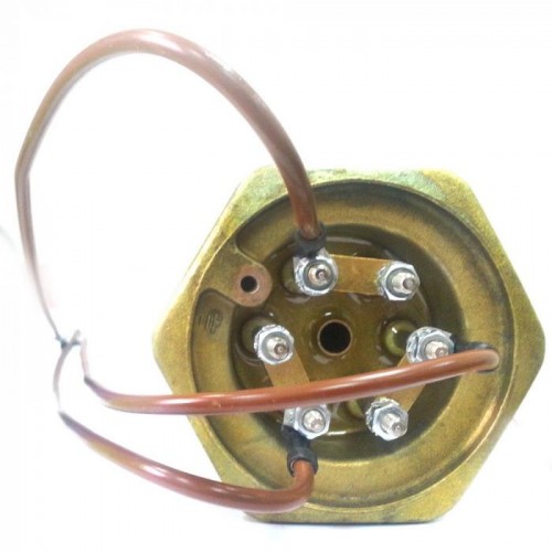 Медный блок ТЭН с трубной резьбой 2 дюйма G2 или 59 мм с проводами и перемычками на фланце для удобного подключения к котлу или водонагревателю.Мощность 3000 Вт.Три нагревательных элемента 380 В.Мощность каждого нагревательного элемента 1000 Вт.Трубная резьба G2.Диаметр резьбы 59 мм.Медная трубка под термостат на фланце.Длина 480 мм.